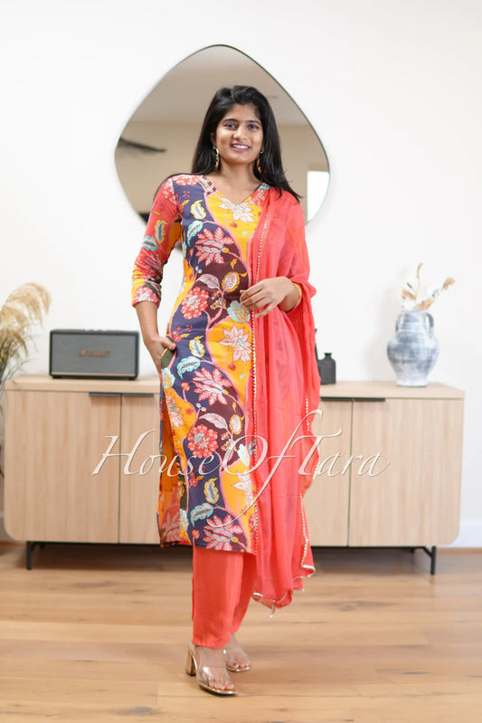 Vibrant Fusion: Colorful Digital Printed Muslin Kurti Set for Ultimate Comfort and Style